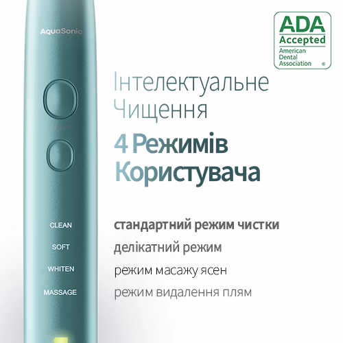 - С 2021 года бренд AquaSonic имеет сертификат ADA